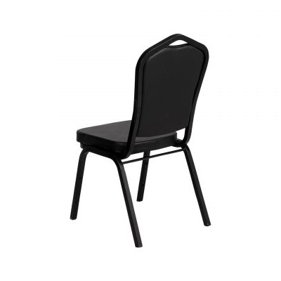Silla apilable tapizada en cuerina negra, estructura de metal color negro